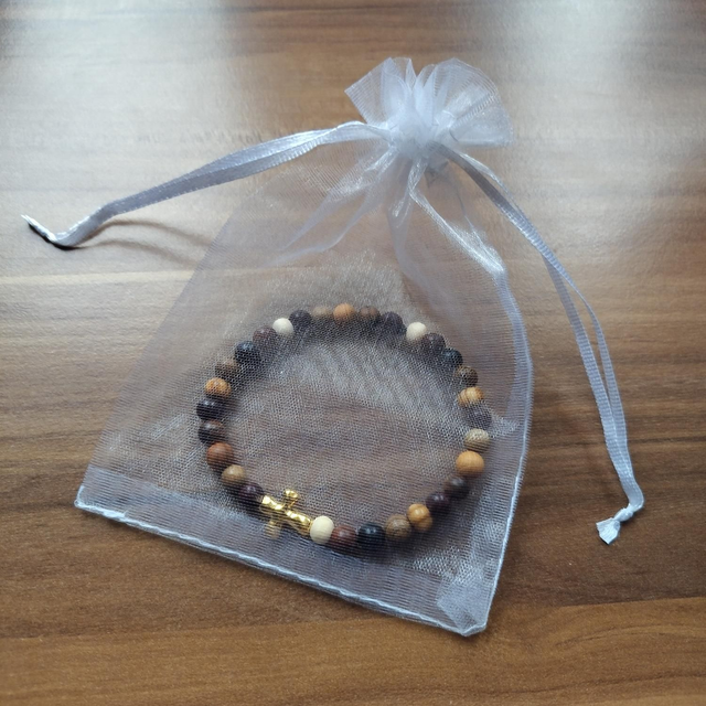 Holzperlen-Armband mit Edelstahlkreuz